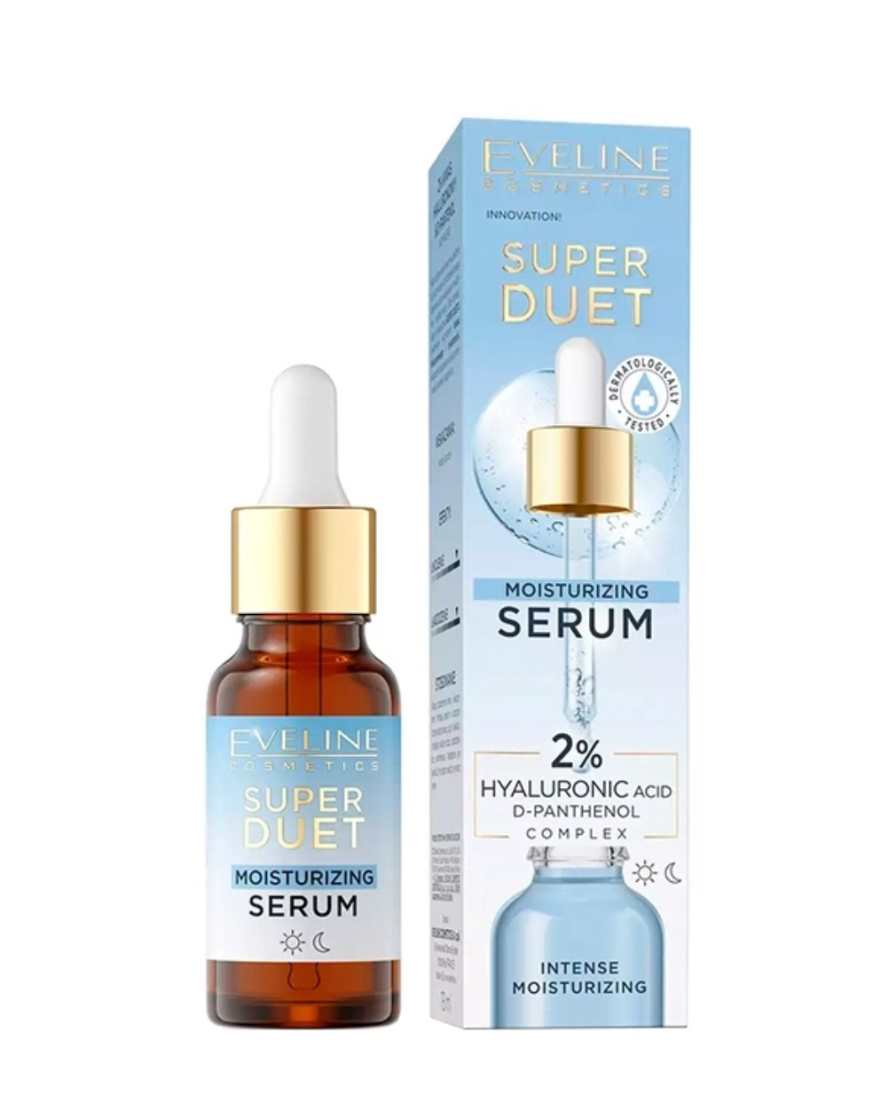 Odkryj moc intensywnego nawilżenia z serum nawilżającym z 2% kwasem hialuronowym i d-pantenolem Super Duet. To prawdziwy eliksir dla skóry potrzebującej intensywnej regeneracji i nawilżenia. Jego lekka, łatwo wchłaniająca się konsystencja sprawia, że aplikacja jest wyjątkowo przyjemna.