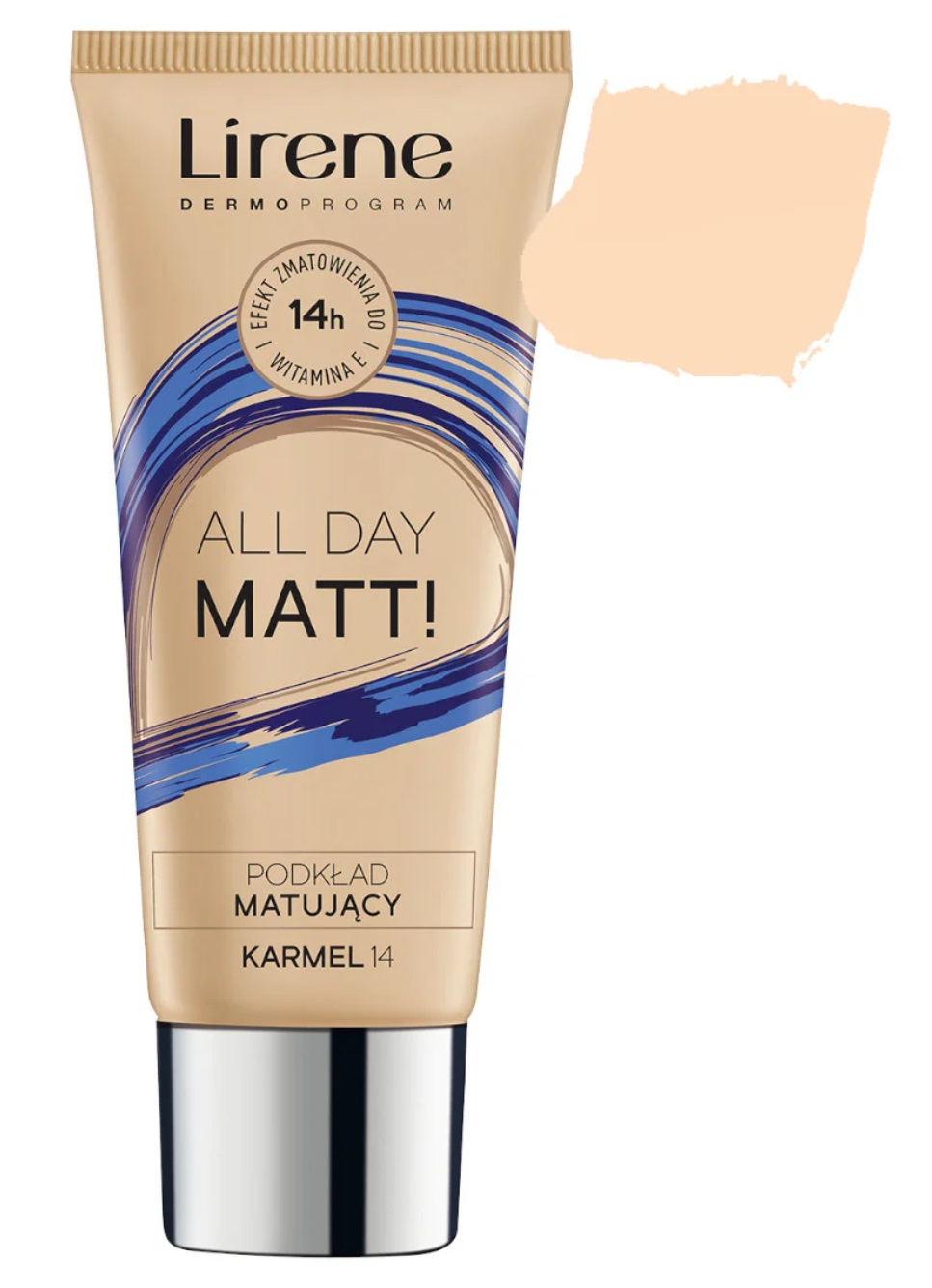 LIRENE All Day Matt! Podkład do twarzy, matujący, bez efektu maski, 14 Karmel