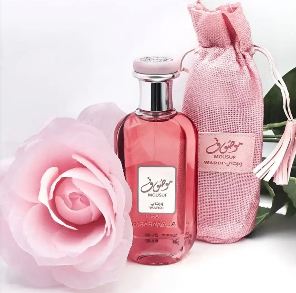 Mousuf Wardi to damskie perfumy arabskie od Ard Al Zaafaran, wydane w 2024 roku. Charakteryzują się owocowo-kwiatową kompozycją z wyraźnymi nutami truskawki, liczi, rabarbaru, róży, wanilii i białego piżma z dodatkiem kaszmiru. Są to perfumy idealne na co dzień i na specjalne okazje, podkreślające kobiecość i elegancję.