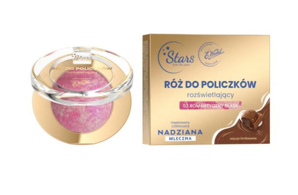 Kosmetyk podkreśla kości policzkowe, nadaje makijażowi zdrowego rumieńca i dodatkowo rozświetlenia.